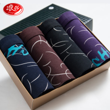 4条浪莎男士内裤 男平角裤纯棉透气u凸性感青年四角裤头裤衩夏季