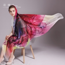 易蝶真丝丝巾女士渐变色围巾春秋季桑蚕丝长薄款披肩/渐入佳境