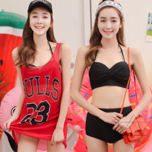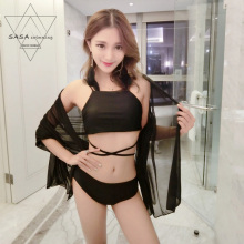 韩国新款罩衫比基尼三件套女士泳衣小胸钢托聚拢分体bikini游泳装