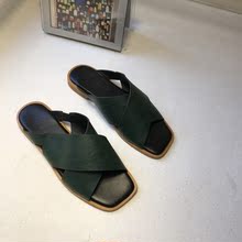 英伦风拖鞋女夏复古做旧一字凉拖平底平跟拖鞋潮一字拖沙滩女鞋