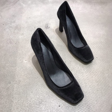 潮流2017年春季新款性感流行单鞋 高跟浅口渐变绒面方头女鞋潮