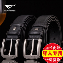 七匹狼皮带男士真皮针扣中年加长皮带男纯牛皮胖子大码140cm腰带