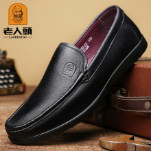 老人头男鞋夏季男士商务休闲皮鞋男真皮套脚透气软皮软底驾车皮鞋