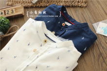 少年 韩国外贸童装17春季新款棉麻立领长袖衬衫 男童儿童