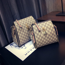2017新款老花水桶包 欧美时尚休闲印花女包单肩斜跨包复古锁扣包