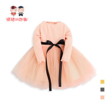 童装2017新款女童连衣裙小童宝宝儿童裙子女长袖拼接纱裙蓬蓬裙春