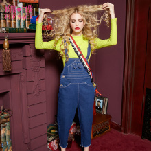 妖精的口袋索性冒险 春装新款宽松学院百搭牛仔背带裤女九分裤