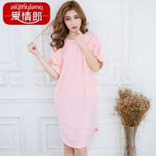 韩版女宽松可爱睡裙纯色棉睡衣家居服春夏季公主休闲裙装短袖薄款