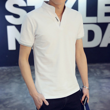 夏季男士短袖T恤纯色v领体恤修身韩版潮流上衣夏装半袖衣服潮牌t