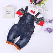 婴幼儿秋冬儿童加绒加厚牛仔长裤韩国女宝宝背带裤可开档1-2-3岁