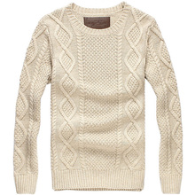CANKUYZ男装2016冬装新品欧美男士棒针扭花毛衣 男圆领加厚针织衫
