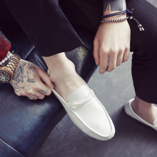 2017百搭夏季韩版潮鞋男鞋子纯黑豆豆鞋白色皮鞋懒人鞋休闲一脚蹬