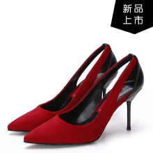 2017春夏女鞋尖头浅口细跟高跟鞋时尚百搭性感绒面蝴蝶结女单鞋