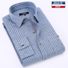 杰哈尼秋季长袖衬衫男士休闲条纹磨毛大码衬衣青年韩版修身潮男装