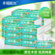 幸福阳光悦木原 小规格抽取式面纸3层110抽18包卫生纸 抽纸批发