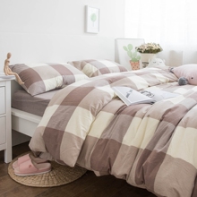 全棉无印纯棉水洗棉麻四件套被单床笠床单款良品床上用品简约格子