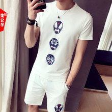 夏季新款男士短袖T恤短裤套装男青少年学生韩版修身潮流体恤衫男