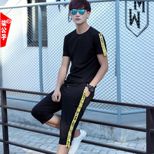 夏季新男士运动套装男青年韩版修身大码T恤休闲短袖五分裤两件套