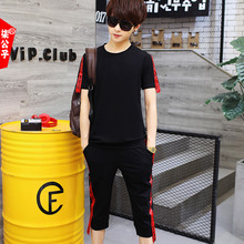 青少年运动套装男夏季潮流T恤日系原宿修身快手红人同款短袖男boy