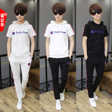 夏季男士套头圆领卫衣 男青年韩版修身短袖T恤运动套装男学生半袖