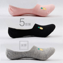 5双装 菠萝刺绣 短袜 女袜 春夏款 船袜 隐形袜 豆豆袜 棉袜 透气