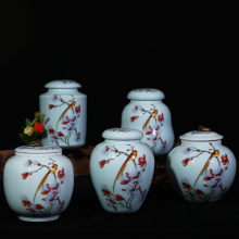 景德镇陶瓷器影青瓷粉彩花鸟茶叶罐创意密封储物糖果罐工艺品摆件