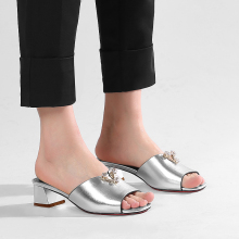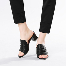 古陌 ifashion夏季女鞋羊皮粗跟凉拖 夏天新品高跟一字型拖鞋