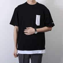 春夏日系青少年假两件拼接经典纯色短袖圆领体恤男女情侣同款潮