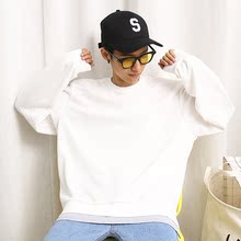 秋季新款潮流圆领纯色毛圈套头卫衣宽松韩版落肩上衣男青少年情侣