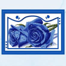印花十字绣蓝色玫瑰情人花卉客厅卧室小幅画