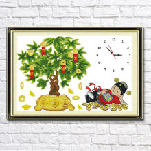 印花十字绣财源滚滚挂钟表小财神爷招财树简单人物卡通客厅卧室画