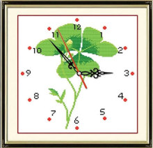 印花十字绣幸运之草钟表简单小幅画客厅卧室挂钟画特价新款