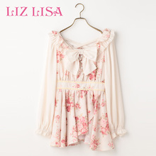 Liz Lisa连衣裙 新品6029花朵印花系带显瘦荷叶边长袖连衣裙