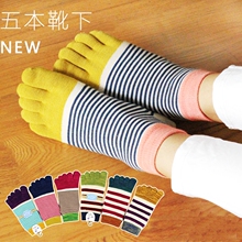 柔软纯棉女款五指袜 条纹中筒个性可爱分脚趾袜子防臭吸汗袜子