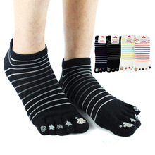 情侣五指袜子 薄款可爱卡通纯棉五指袜 透气条纹分脚趾防臭袜子