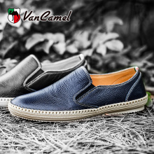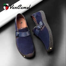 西域骆驼男鞋正品夏季休闲鞋 头层牛皮真皮缝制皮鞋英伦 套脚鞋男