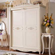 欧式移门衣柜衣橱趟门衣柜实木推拉门柜收纳大衣柜法式雕花储物柜