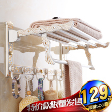 金色加白色毛巾架欧式可折叠浴巾架不锈钢双层置物架带毛巾杆双杆