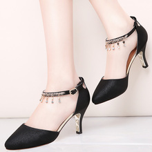 Stylele/丝黛儿细跟凉鞋2017夏季新品女鞋低跟高跟单鞋一字扣金属