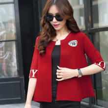 春装针织开衫女外套2017新款百搭毛衣显瘦五分袖针织开衫短外套女