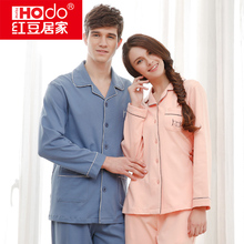 红豆居家情侣长袖春夏纯棉梭织磨毛男女睡衣秋冬全棉家居服套装