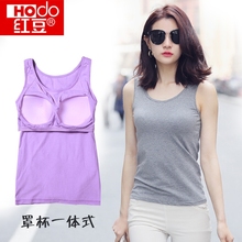红豆无钢圈一体式带胸垫免穿文胸bra运动瑜伽夏季纯棉打底背心女