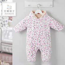 艾娜骑士豹纹婴儿连体衣新生儿外出服宝宝棉服秋冬款加厚
