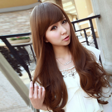 倾一色 包邮微卷齐斜刘海女生大波浪中长卷发蓬松修脸时