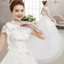 2017新款时尚婚纱礼服包肩高领蕾丝新娘韩版包肩绑带拖尾婚纱