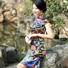 龙艳真丝旗袍连衣裙短款2017新款春夏修身改良高档桑蚕丝日常礼服