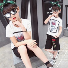 童装2017夏季印花韩版女童套装女孩中大童短袖T恤中裤两件套纯棉