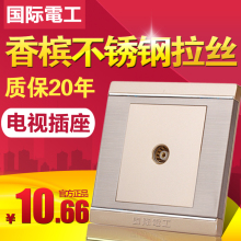 国际电工开关插座面板香槟金不锈钢拉丝闭路插座一位有线电视插座