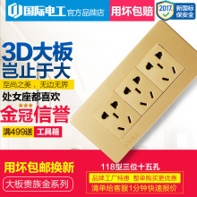 国际电工118型开关插座面板香槟金钢架三位十五孔中盒九孔插座