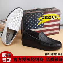 高哥增高鞋男6cm镂空软面皮鞋男WZ9798夏季白鞋休闲鞋透气驾车鞋